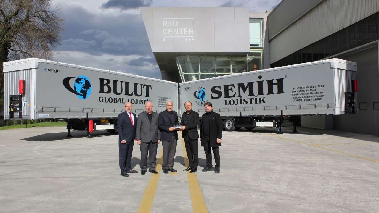 Semih Lojistik yeni araçlarını Tırsan Adapazarı Mega Üretim Kampüsü’nde gerçekleştirilen tören ile teslim aldı. Tırsan Treyler Yönetim Kurulu Başkanı Çetin Nuhoğlu’nun ev sahipliğinde gerçekleştirilen törene; Semih Lojistik ortakları Güngör Bulut, Necmettin Bulut, Hasan Bulut ve Tırsan Treyler Satış İcra Kurulu Üyesi Recep Demirci katılım gösterdi.