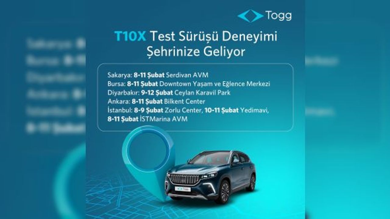 Türkiye’nin mobilite alanında hizmet veren küresel teknoloji markası Togg, 2024 yılında daha fazla kullanıcıyı T10X ile buluşturmak için çalışmalarını aralıksız sürdürüyor. 2024 yılı için 20 Ocak itibarıyla siparişleri almaya başlayan Togg, T10X için Sakarya, Bursa, Diyarbakır, Ankara ve İstanbul’da kullanıcılar için test sürüşü günleri başlattı. Kullanıcılar Togg’un sitesindeki https://www.togg.com.tr/t10x-surus-deneyimi adresinden randevu oluşturup, T10X’i daha yakından tanıma fırsatı buluyor. T10X, bu yıl çekiliş yapılmadan, sipariş sırasına, konfigürasyon özelliklerine ve bunlara bağlı üretim planlamasına göre kullanıcılara teslim ediliyor.
