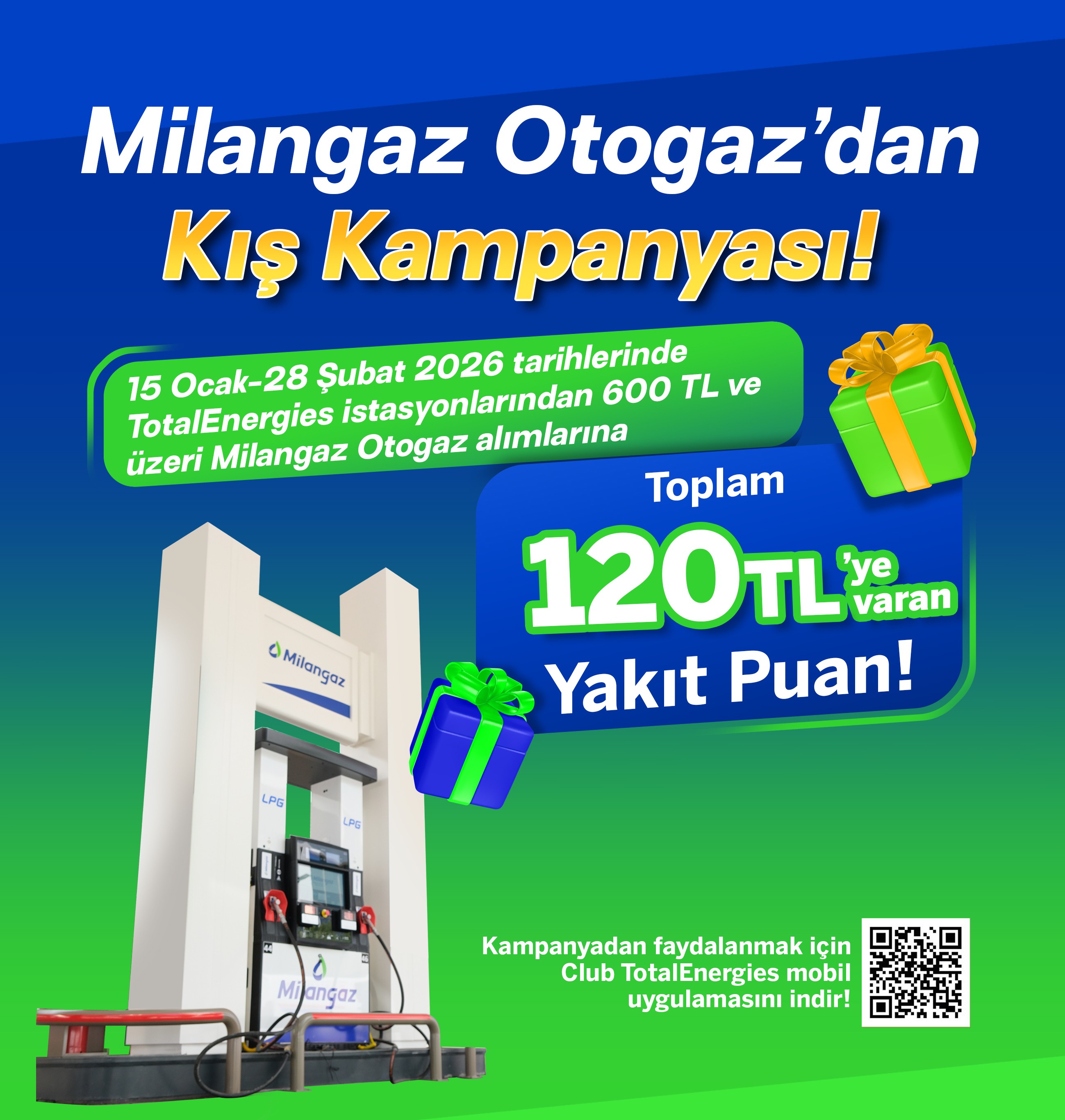 TotalEnergies İstasyonları, kış dönemi kampanyası kapsamında Milangaz Otogaz alışverişlerine 120 TL’ye kadar yakıt puan veriyor. 15 Ocak-28 Şubat tarihleri arasında geçerli olan kampanyadan Club TotalEnergies üyeleri faydalanabilecek.