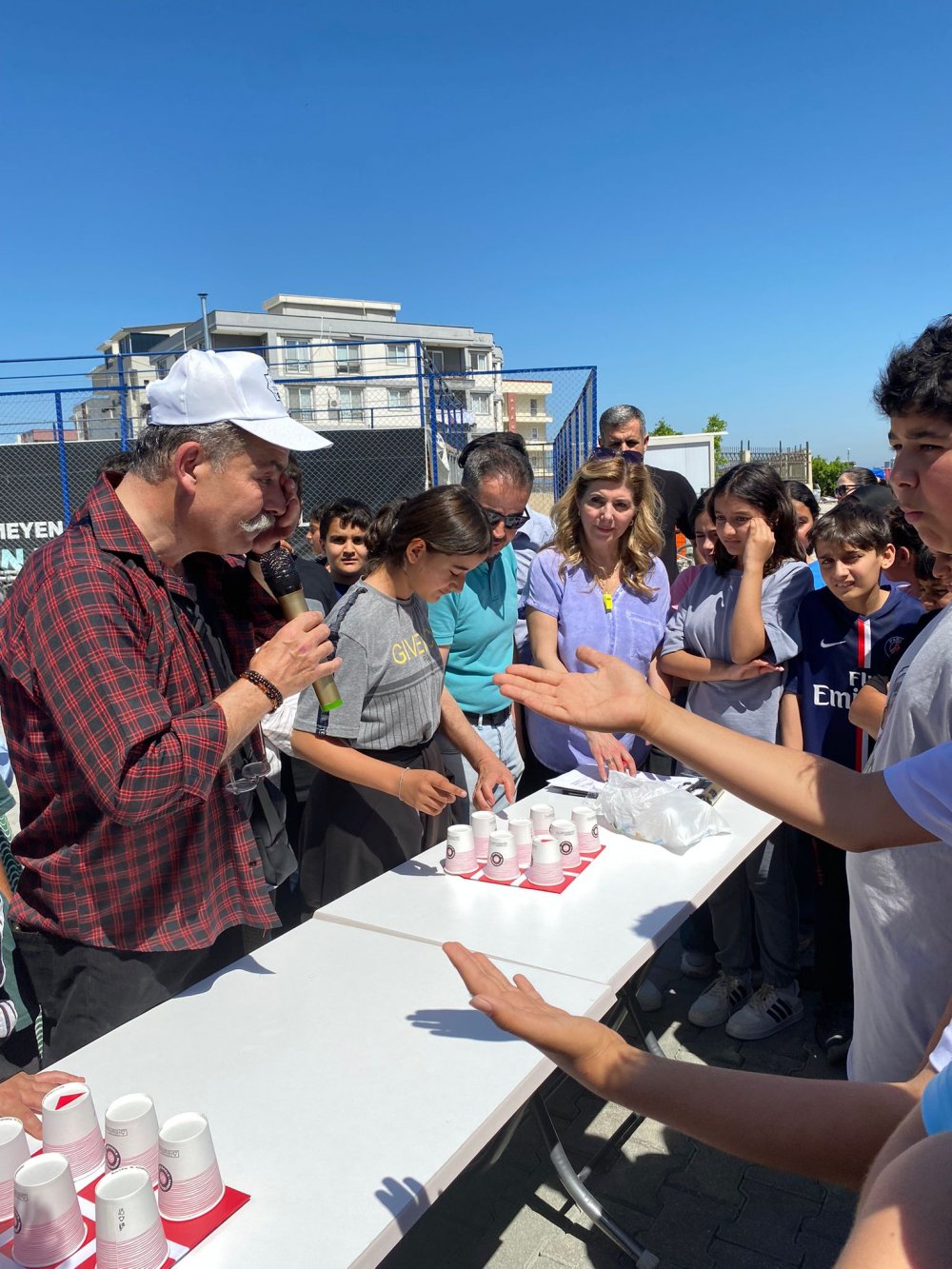 Programın detayları hakkında bilgi veren Güçlü, “Atakaş Konteyner Kent 100.Yıl Orta Okulu’nda Okul Müdürü Adem Bilgin’i ziyaret ettik. Bu öğrencilerimiz çok zor koşullarda eğitim alıyorlar. Bu nedenle onların morallerini düzeltmek, takım ruhunu geliştirmek için eğitim içerikli yarışmalar ve oyunlar yaptık. Bu yarışma sonucunda öğrencilerimize; spor malzemeleri, kalemler, boya setleri, antrenman setleri gibi hediyeler verdik.” dedi.