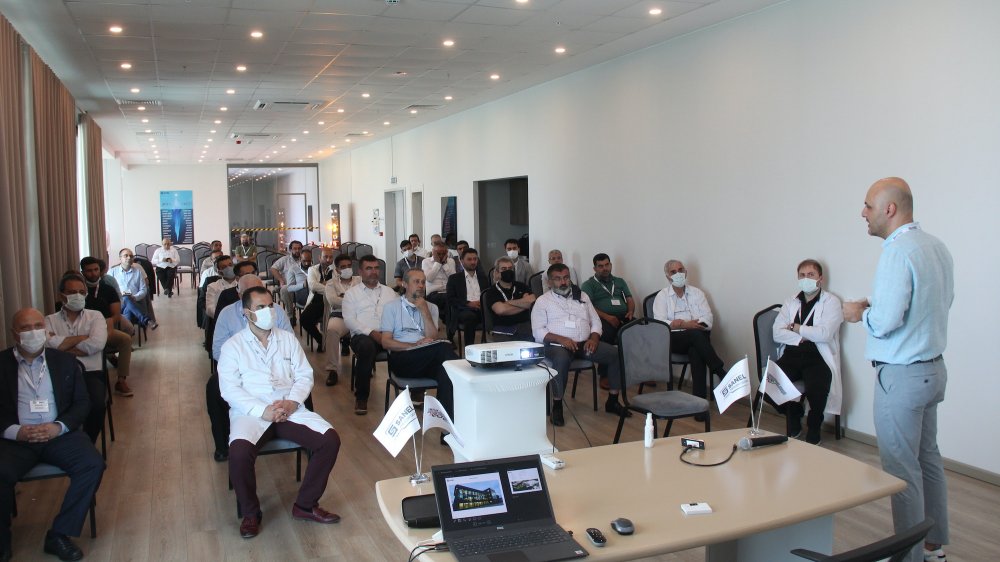 Ar-Ge Müdürü Onur Akıner, 10 yıldır Sanel bünyesinde çalıştığını belirterek Ar-Ge merkezi hakkında bilgi verdi. “2017 yıında Ar-Ge merkezi ünvanı aldık. Toplamda 44 pesonelimiz var. Çekirdek tasınım ekibimiz 14 kişiden oluşuyor. Anahtar özelliğimiz, müşteriyi iyi dinlemek ve çözüm üretmek” diyen Akıner, tasarım, tescil ve patent çalışmaları yaptıklarını aktardı.