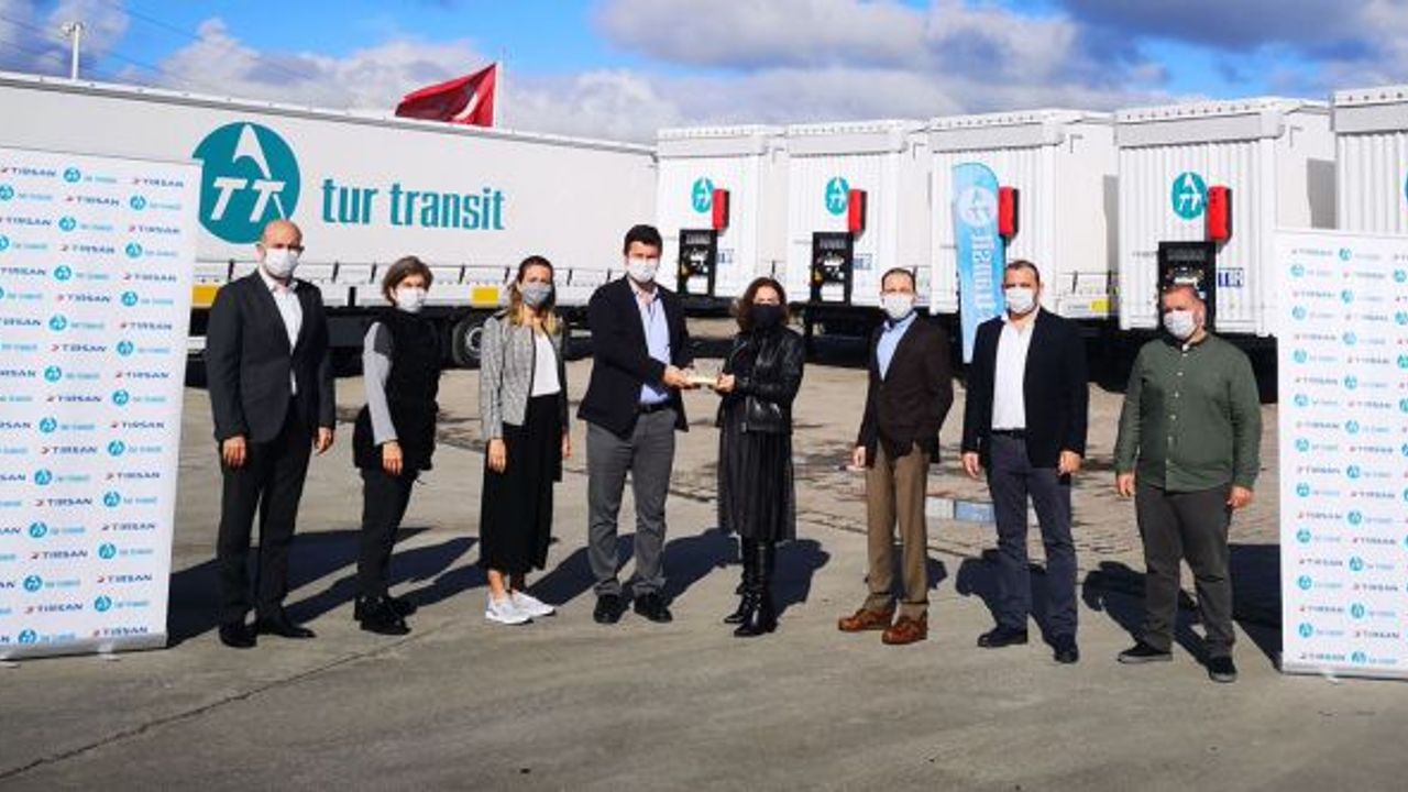 Treyler sektörünün güvenilir lideri Tırsan, birincil önceliği tam müşteri memnuniyeti ile müşterilerinin ihtiyaçları doğrultusunda geliştirdiği en geniş ürün gamıyla, lojistik firmalarının ilk tercihi olmaya devam ediyor. Tur Transit Lojistik’in İstanbul’da bulunan garajında gerçekleştirilen teslimat törenine; Tur Transit Lojistik İcra Kurulu Başkanı Şebnem Zeybek, Finans Direktörü Melis Yüksel, Operasyon Direktörü Melih Atabek, Satış Direktörü Onur Atabek, Proje Kargo Direktörü Serdar Atabek, Tırsan Treyler Satış Koordinatörü Ertuğrul Erkoç ve Satış Yöneticisi Orkun Demir katılım gösterdi.