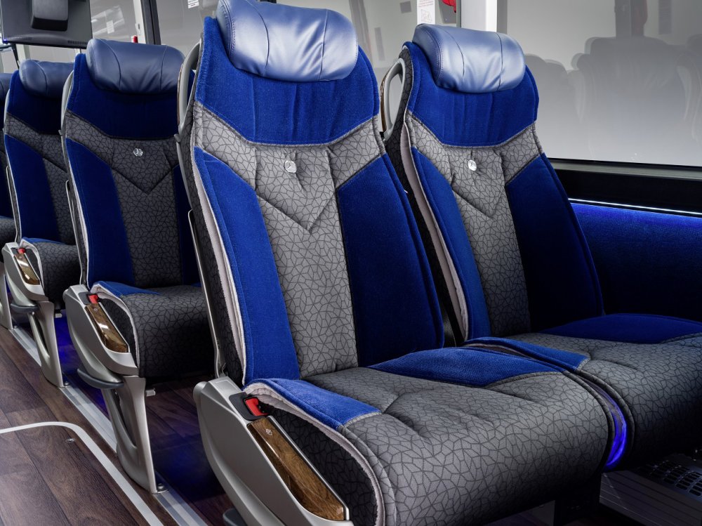 Konforlu Mercedes-Benz Travel Star Eco koltuklar, Tourrider Business’ta standart olarak sunuluyor. Tourrider Premium’un koltukları ise lüks sınıf deneyimi yaşatıyor. Luxline döşemeli Travel Star Xtra, Mercedes-Benz’in en iyi yolcu otobüsü koltukları olarak biliniyor. Otobüs şirketleri isterlerse; farklı kumaşlar, renkler, süslemeler, kapitone kumaşlarla veya şık ama bakımı bir o kadar kolay deri-elyaf birleşimi malzemelerle Tourrider’ın benzersiz karakterini daha da güçlendirebiliyor. İç mekân için farklı tasarım seçenekleri de sunuluyor. Ayrıca yolcular için ikili koltukların arasında elektronik cihazlarını şarj etmek için bir çift USB ve/veya 110 volt prizler de sunuluyor.