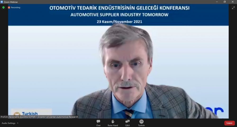 İçten yanmalı motorlu araçların satışının 2050’de çok azalacağını vurgulayan Prof. Dr. Dudenhöffer, Türkiye’nin bu süreçten kazançlı çıkabileceğini söyledi. Dudenhöffer, şu açıklamaları yaptı: “İçten yanmalı motorlu araçların satışı 2030’a kadar yüzde 70 düşecek. Bu alandaki tedarikçiler bugüne kadar bir şey yapmadıysa, zaten geç kalmış demektir. Ne kadar hızlı bir şekilde buna uyum sağlarsak o kadar iyi olur. Elektrikli araç grafiği çok hızlı yükseliyor. Büyük tedarikçiler de bu anlamda yeni işler kuruyor. Çok yeni ve geliştirilebilir bir iş alanı, herkes de buraya dahil olmak istiyor. Bu süreçte 500 bin kişinin işini kaybedileceği konuşuluyor ama çok daha fazla yeni istihdam da sağlanacak. Ben bu durumu Türkiye için büyük fırsat olarak görüyorum. Türkiye için fırsat kapıda. Bir otomotiv ülkesi olan Türkiye, nitelikli iş gücü, güçlü ana ve tedarik altyapısı, yeterliliği ve potansiyeli ile dönüşüme adapte olup, kazançlı çıkabilir. Türkiye’nin aktif rol alarak elektrikli araçlar yatırım ağına katılması çok önemli. Elektrikli araçlar olmadan karbon nötr hedefi mümkün değil. Bu alanda ne kadar yatırım yapılırsa gelecekte rekabet gücü o kadar artar.”