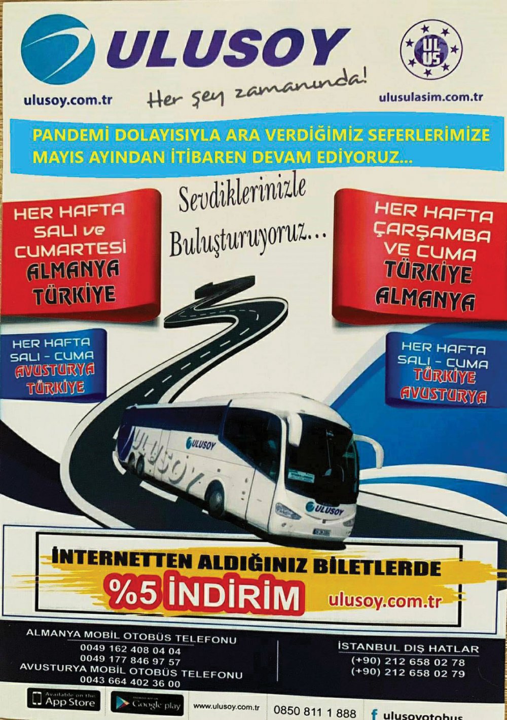 Ulusoy’un Almanya-Türkiye arasında seferlerini başlatacağına yönelik bilgiyi Aybüke Kaptan sayesinde öğrendim. Pandemi sürecinin hepimizi umutsuzluğa düşürdüğü bir süreçte Almanya-Türkiye arasında bir firmanın tekrar sefer düzenlemeye başlaması çok önemli bir gelişmeydi. Seferlere yönelik yürütülen çalışmalarla ilgili hemen bilgi almak için Aybüke Kaptan ile görüştüm. O da beni Ulusoy Turizm bünyesinde aracını çalıştıran ve 8 Mayıs’ta ilk seferi gerçekleştirecek olan bireysel otobüsçü Selman Bilici ile tanıştırdı.