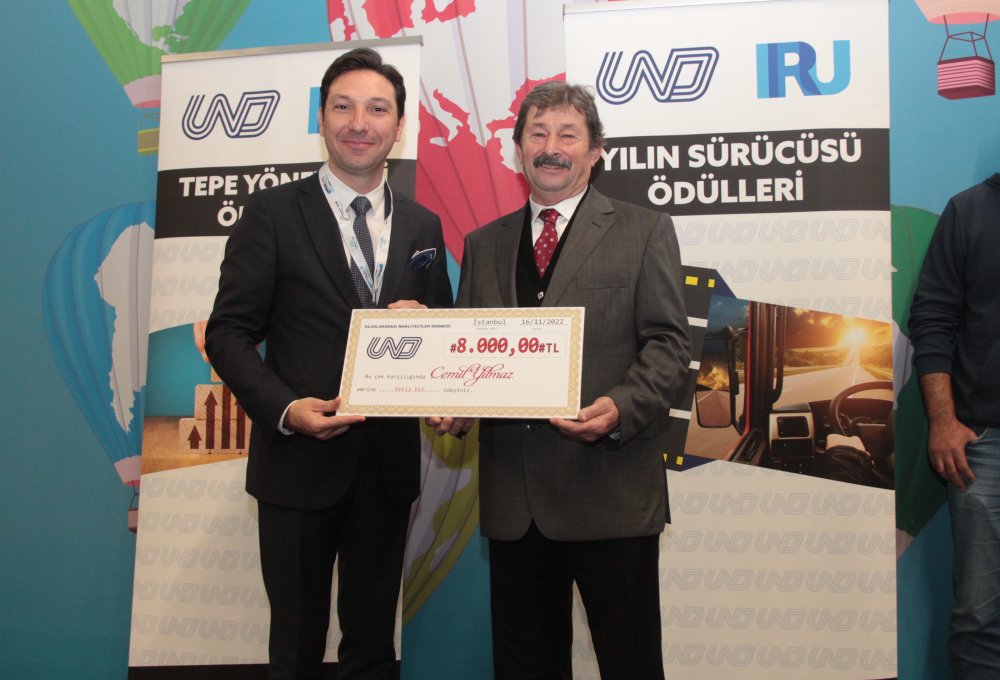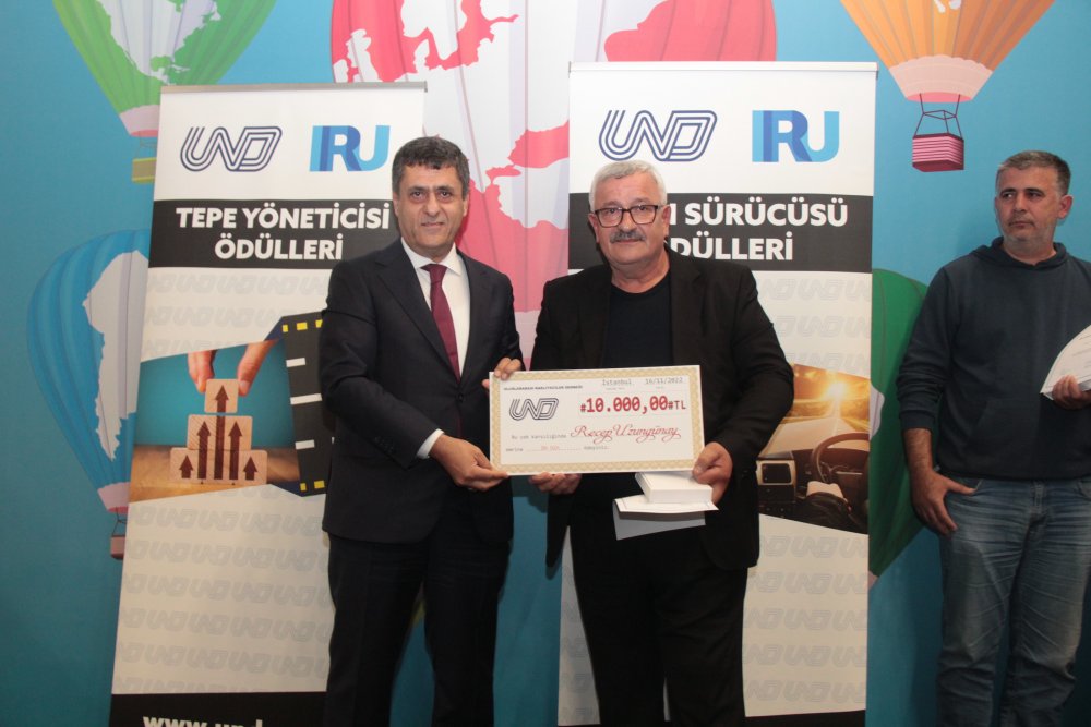IRU-UND Profesyonel Sürücü Onur Nişanı Ödülleri kapsamında 53 sürücüye başarı ödülü verildi. Birincilik ödülünü Trans Birdal Uluslararası Nakliyat’tan Recep Uzungünay kazandı. Uzungünay’a 10 bin TL değerindeki para ödülü UND İkinci Başkanı Şerafettin Aras tarafından takdim edildi. İkincilik ödülüne Best Uluslararası Nakliyat’tan Cemil Yılmaz layık görüldü. Yılmaz 8 bin TL değerindeki ödülünü IRU Türkiye ve Bölgesi Daimi Temsilcisi Erman Ereke’den aldı.İmsan Nakliyat’tan Mehmet Çeken ise 6 bin TL değerindeki üçüncülük ödülünün sahibi oldu. Çeken adına ödülünü şirket temsilcisi Feryal Çiçek, UND Yönetim Kurulu Üyesi Necati Özmen’den aldı.