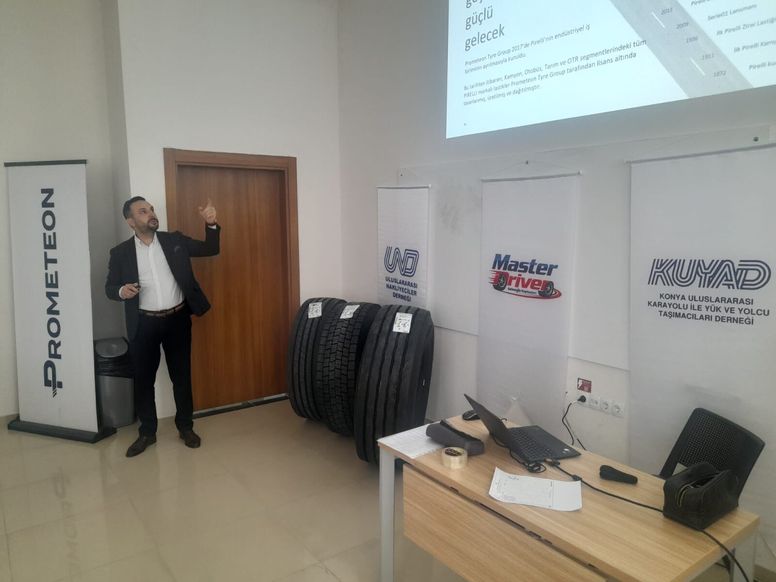 Derslerde TOBBUND ve Kolay Transit Merkezleri prosedürlerine ilişkin eğitimler verilirken, Prometeon tarafından da temel lastik eğitimi sunuluyor.
