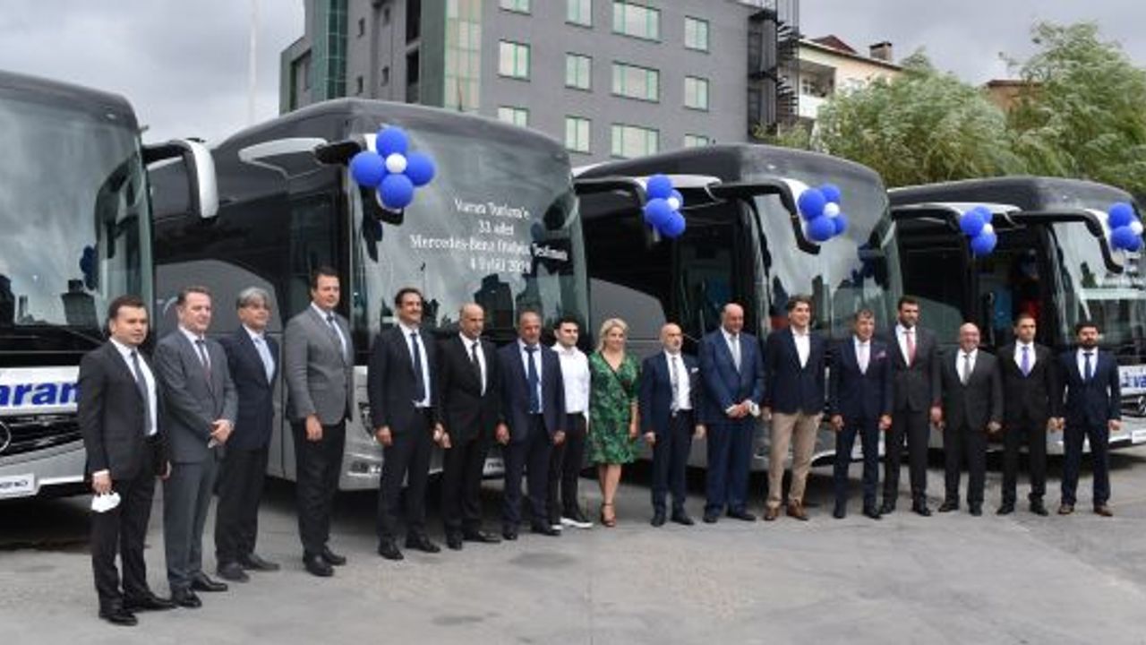 Varan Turizm’in 33 Mercedes otobüs alımı törenine TOBB Karayolu Yolcu Taşımacılığı Sektör Meclisi Başkanı Mustafa Yıldırım, MAPAR Otomotiv Yönetim Kurulu Başkanı Yalçın Şahin, Eski TÜRSAB Başkanı Başaran Ulusoy’da katıldı.