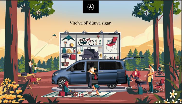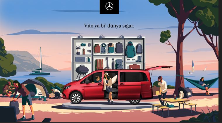 Mercedes-Benz, “Vito’ya bi’ dünya sığar” sloganı ile sürücüye ek sekiz yolcuya kadar farklı oturma düzenleri sunan ve ticari yolcu taşımacılığında Türkiye’de en çok ilgi gören araçlardan olan Vito Tourer için Türkiye genelindeki alışveriş merkezlerinde sergileme alanı oluşturuyor. Online olarak başvurarak test sürüşü yapmak isteyen müşterilere ek olarak 20 Haziran - 16 Aralık tarihleri arasında sergileme alanlarını ziyaret ederek kayıt yaptıranlar da illerindeki Mercedes-Benz acentelerinde Vito Tourer ile test sürüşü yaparak Mercedes-Benz’in sunduğu lüks ve konforu deneyimleyebilecekler.