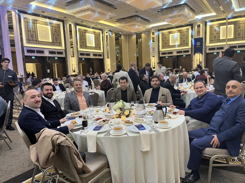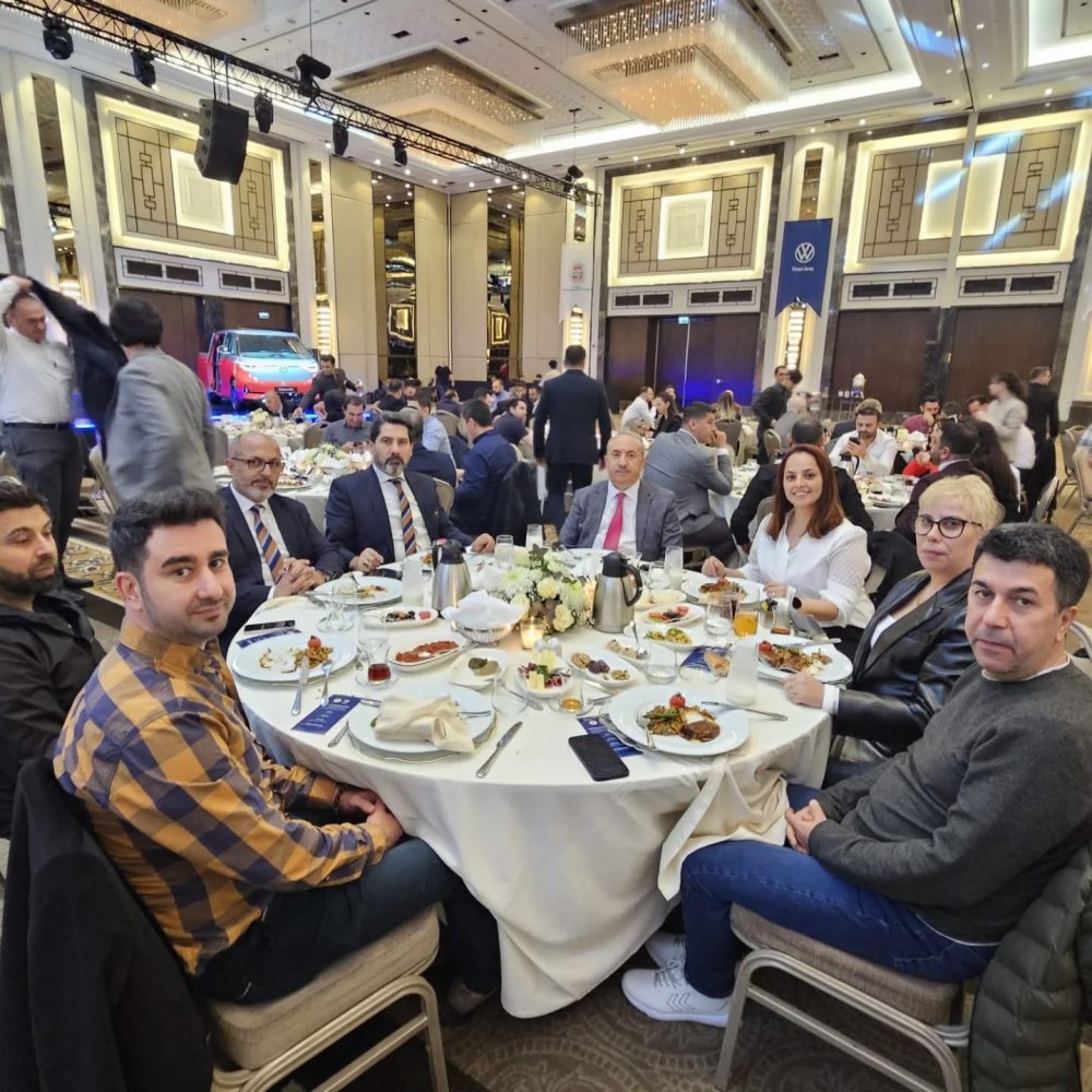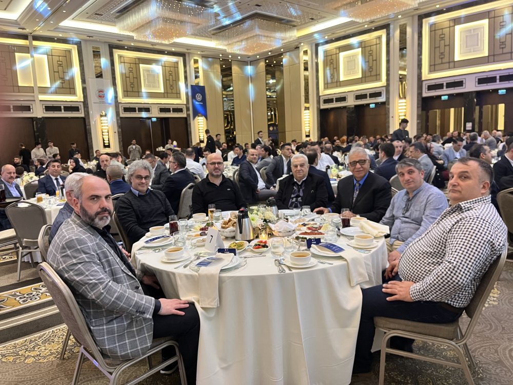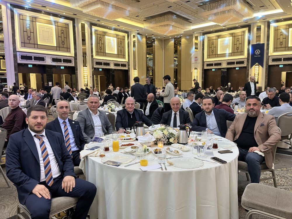 13 Mart 2025 Perşembe akşamı Bomonti Hilton Hotel’de gerçekleşen iftar yemeğine İSTAB Başkanı Aziz Baş, Başkan Vekili Bülent Doğmuş, Başkan Yardımcıları Ahmet Akgenç, Metin Uludağ, Genel Sekreter Esat Yıldırım, Yönetim Kurulu Üyeleri, Volkswagen Ticari Araç Pazarlama Müdürü Taner Kozlan, Satış Müdürü Harun Göktaş, Özel Satış Yöneticisi Onurcan Tosun, Avek Otomotiv Filo Satış ve Avekrentacar Satın Alma Direktörü Murat Üzüm, TTDER Başkanı Sümer Yığcı, Genel Sekreter Mehmet Öksüz, Başkan Yardımcısı Taşkın Arık, TUİDER Başkanı Mümtaz Er, Yönetim Kurulu Üyeleri Semih Yıldızhan, Emre Ak, Serkan Temizsoy, Şenol Şahinoğlu, GETAB Onursal Başkanı Ziyaettin Yüzbaşıoğulları, Yönetim Kurulu Başkanı Sezai Gürses, Yönetim Kurulu Üyeleri Yusuf Ömür, Salim Keskin, Mehmet Keleş, Yavuz Yanık, GETAB kurucularından Erol Akalın ve 15 kişilik heyet, KOTAB Başkanı Bilal Cem Acar, Yönetim Kurulu Üyeleri Raşit Arslan, Yekta Türker, Önder Kara ile çok sayıda servis taşımacısı firma sahibi katıldı.