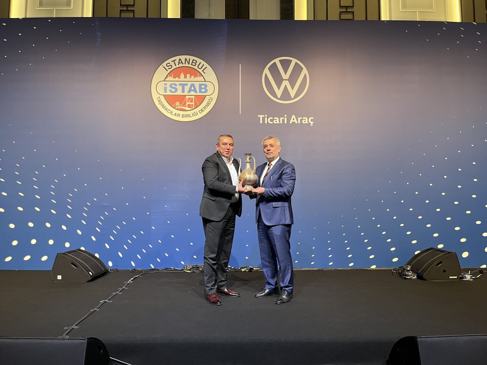Konuşmaların ardından sektöre verdikleri destekler için İSTAB Başkanı Aziz Baş tarafından Volkswagen Ticari Araç Pazarlama Müdürü Taner Kozlan’a bir hediye sunuldu.