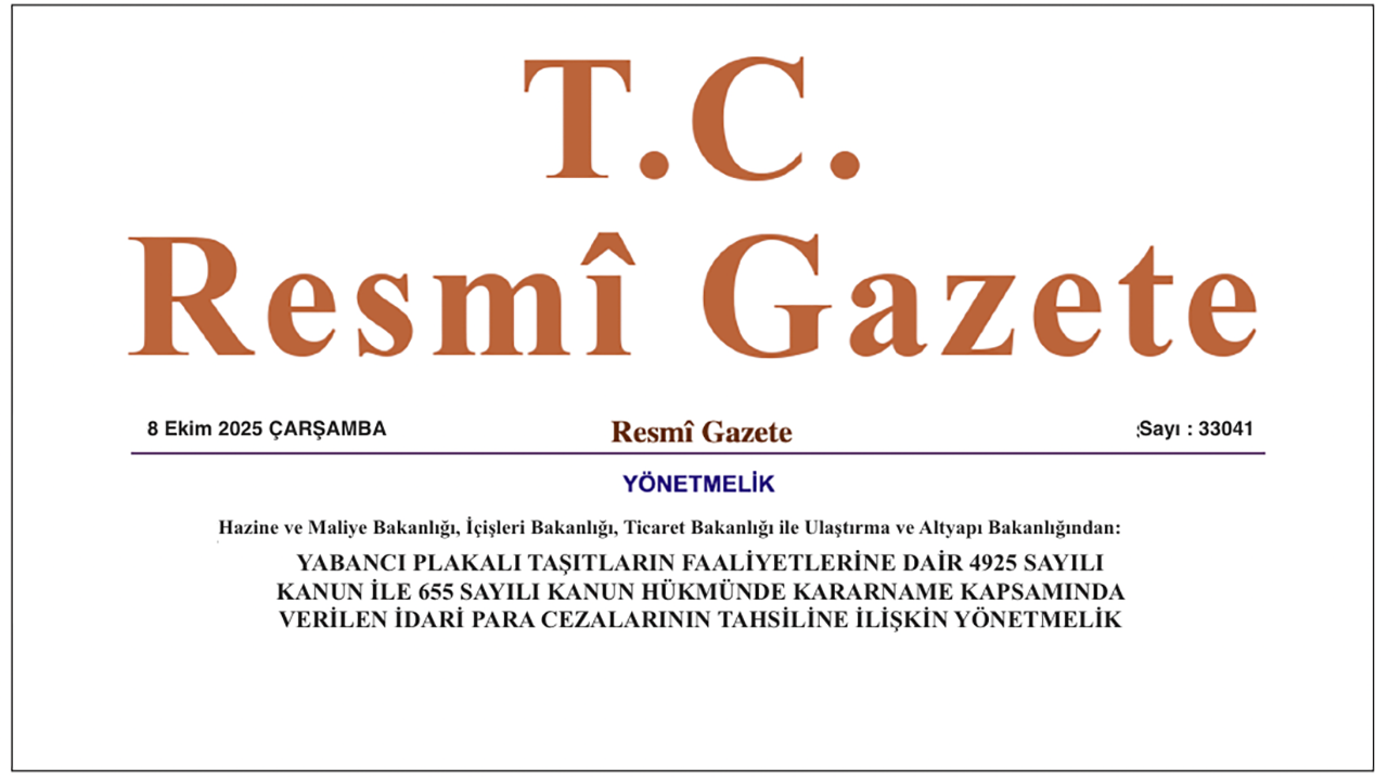 8 Ekim 2025 tarihli Resmî Gazete’de yayımlanan yeni yönetmelikle, yabancı plakalı araçların Türkiye’de faaliyetleri sırasında işledikleri ihlallere yönelik para cezalarının tahsiline dair önemli düzenlemeler yürürlüğe girdi.
