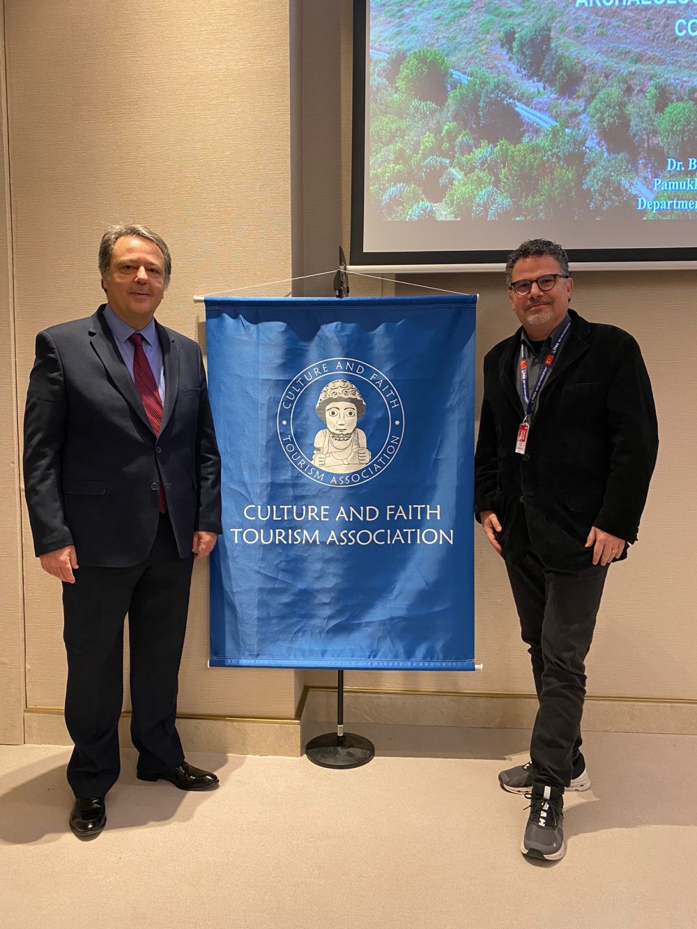 Destination İzmir Başkanı Bülent Tercan (solda) ile Kültür ve İnanç Turizmi Derneği yöneticisi Cenk Eronat (sağda)