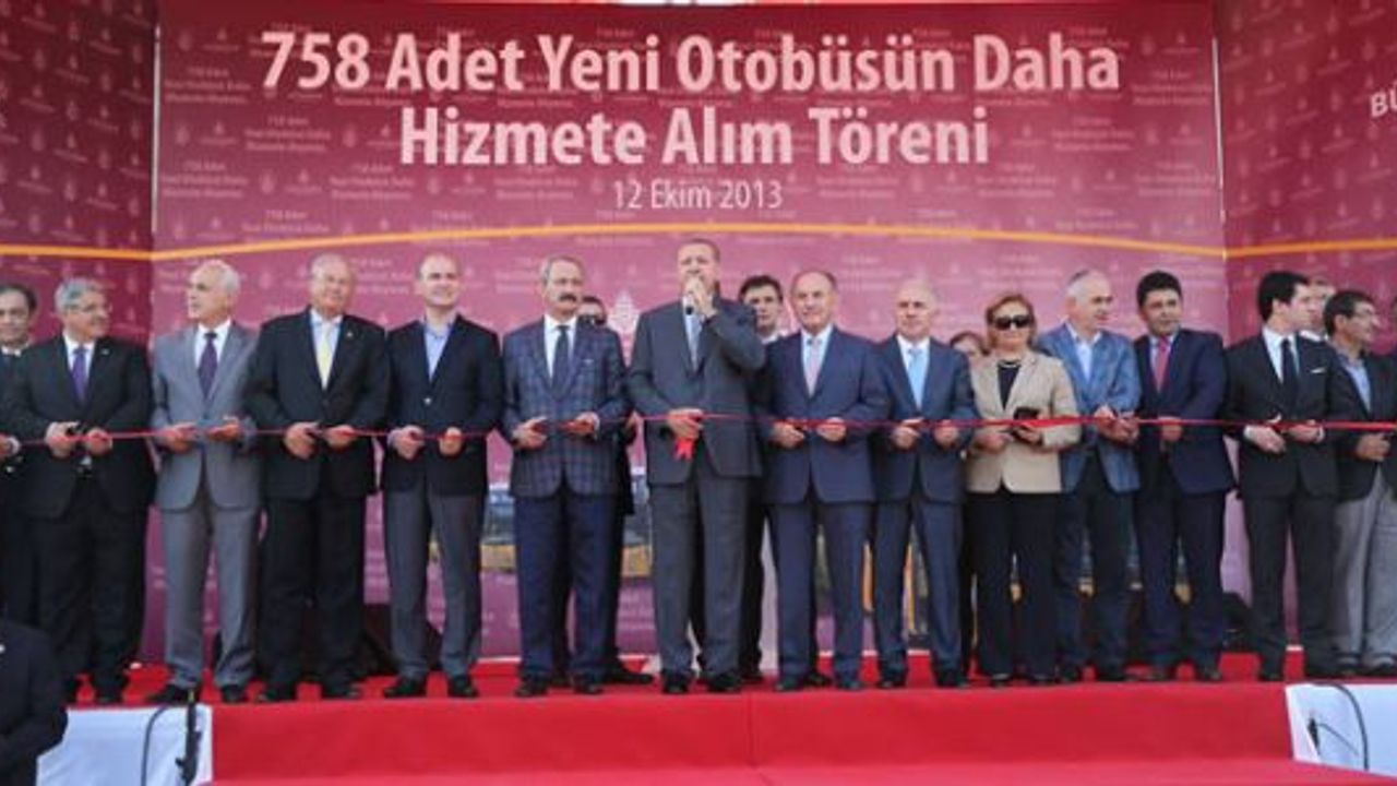 Kayışdağı'ndaki İETT Anadolu Garajı’nda düzenlenen 758 otobüsün hizmete alım törenine Başkan Kadir Topbaş’ın yanı sıra, Başbakan Recep Tayyip Erdoğan, Ekonomi Bakanı Zafer Çağlayan, İstanbul Valisi Hüseyin Avni Mutlu, AK Parti İstanbul Milletvekilleri, İETT Genel Müdürü Dr. Hayri Baraçlı ve çok sayıda vatandaş katıldı.
