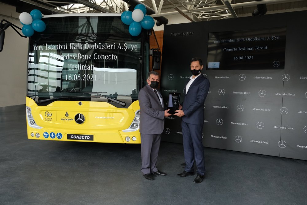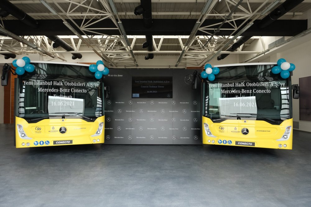 Yeni İstanbul Halk Otobüsleri A.Ş.16 Haziran günü gerçekleştirilen teslimatta Yeni İstanbul Halk Otobüsleri A.Ş. Yönetim Kurulu Başkanı Yalçın Beşir ve yönetim kurulu üyeleri 10 adet 2021 model Mercedes-Benz Conecto Solo aracı, Mercedes-Benz Türk Genel Müdürlük’te düzenlenen törenle Mercedes-Benz Türk Şehir İçi Otobüs ve Kamu Satış Grup Müdürü Orhan Çavuş, Otobüs Müşteri Hizmetleri Grup Müdürü Özgür Taşgın ve Kamu Satış Koordinatörü Can Okumuş’tan teslim aldı.