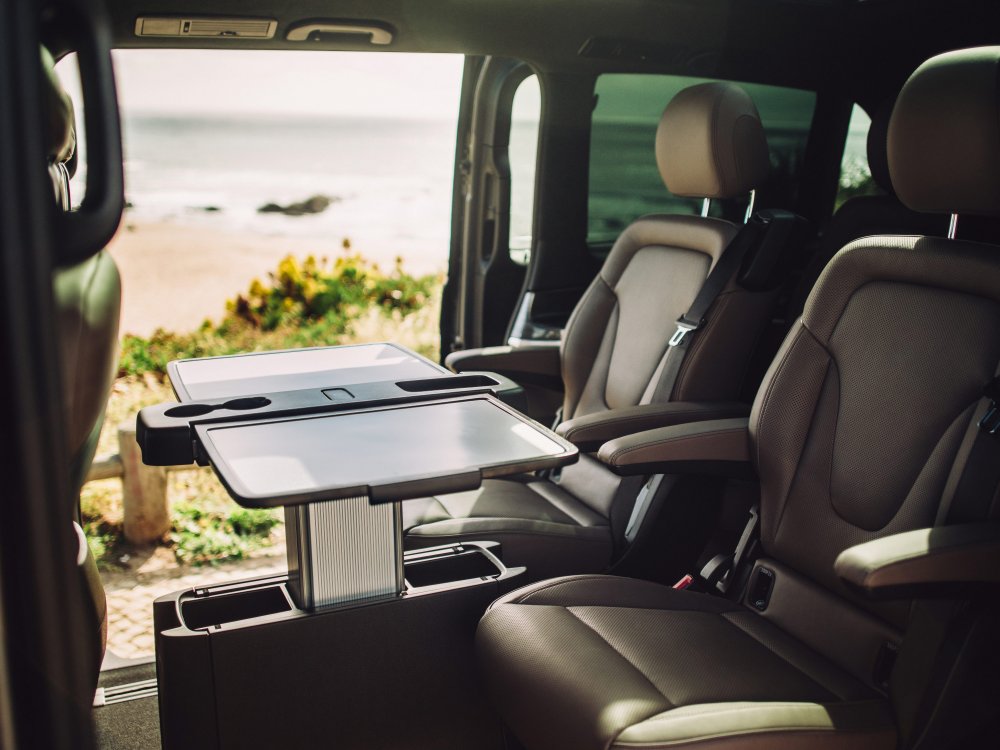 Tasarımcılar, güncel Mercedes-Benz binek otomobil modellerinin iç tasarım felsefesini yeni V-Serisi’ne uyarlamak için özel bir çaba sarf etti. Yeni V-Serisi’nin iç mekânı, markanın güncel tasarım anlayışını sürdürüyor. Yeni Mercedes-Benz V-Serisi’nin arka bölümünde sunulan yüz yüze bakabilen ısıtmalı ve soğutmalı deri koltuklar, panoramik cam tavan seçeneği, katlanabilir masa ve bardaklıklar ile konfor ve ergonomi seviyesi bir üst noktaya taşınıyor. V-Serisi, sunmuş olduğu Tartufo Nappa Deri, Siyah Nappa Deri ve Bej Nappa Deri ile iç mekana modern ve zarif bir görünüm kazandırıyor. Arka bölümde, kapı döşemelerinde ve ön konsolda uygulanan süslemeler de kabin içerisindeki modern ve zarif görünümü destekliyor. Yeni V-Serisi’nde sunulan ambiyans aydınlatma, polar, solar ve beyaz olarak 3 farklı renk seçeneği ile her durumda kendinizi iyi hissettiren bir ortam yaratabiliyor. Sportif bir görünüme sahip türbin şeklindeki havalandırma ızgaraları ile 5 inç ekrana sahip gösterge paneli kullanıma sunuluyor. Yalınlaştırılan tasarım yaklaşımı sayesinde sürücüler, fonksiyonlara kolayca erişim sağlayabiliyor.