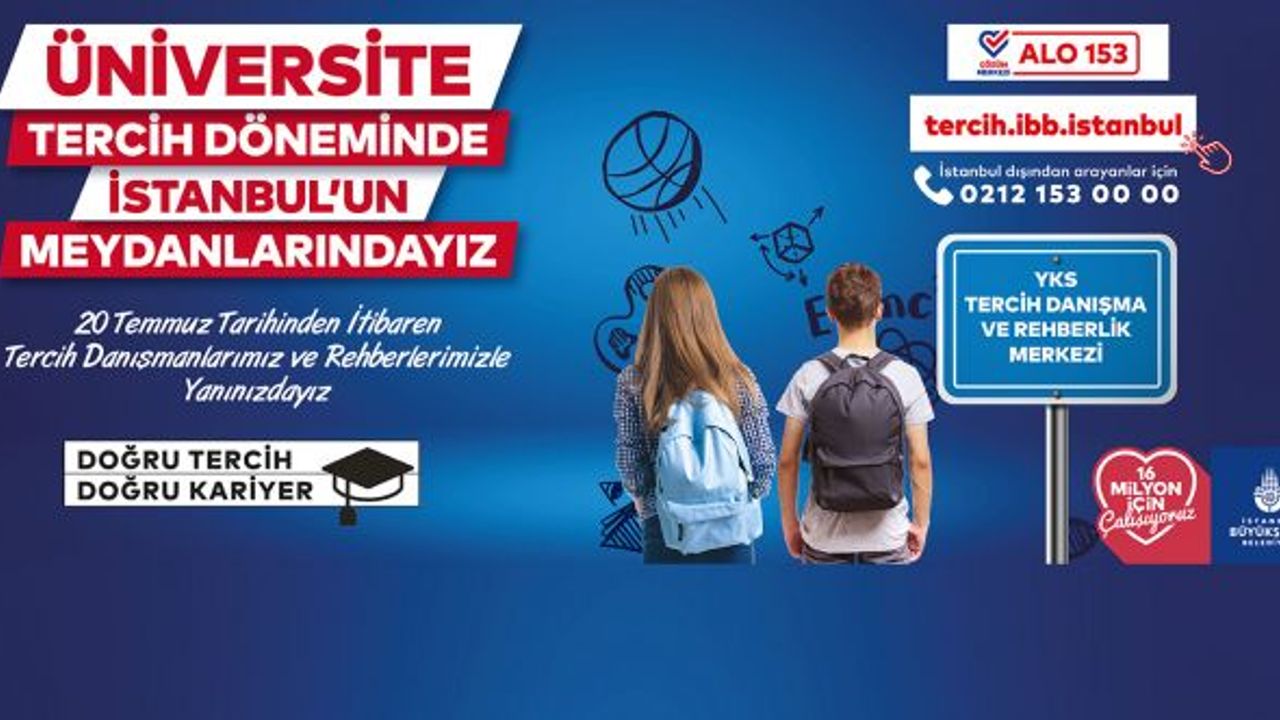 Üniversiteli adaylarının 18 – 19 Haziran’da yapılan YKS sonuçlarının açıklanması ile birlikte tercih heyecanı da başladı. Yüz binlerce genç, geleceklerini inşa edecekleri mesleklerin ilk adımı olan üniversite eğitimi için tercih yapacak. İstanbul Büyükşehir Belediyesi (İBB), Tercih Danışma ve Rehberlik Merkezleri ile üniversite seçimi konusunda 20 Temmuz’dan itibaren İstanbul’un meydanlarında gençlere ücretsiz danışmanlık hizmeti verecek.