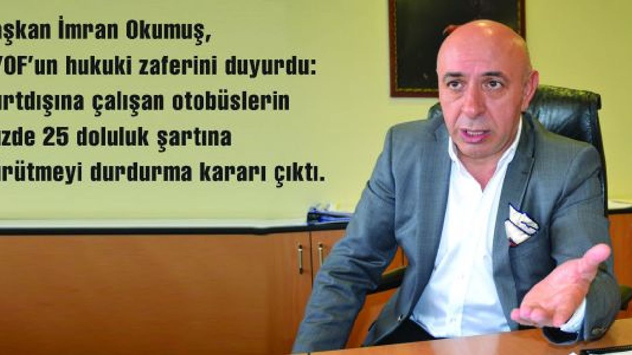 UYOF Başkanı İmran Okumuş, “Danıştay’a dava açtık; B1 yetki belgelerinin yurtdışı seferlerinde yüzde 25 doluluk şartı aranması uygulamasının iptalini istedik. Verdiğimiz hukuki mücadelenin sonucunu 13 Ekim 2015 tarihli Danıştay kararıyla elde ettik ve yüzde 25 doluluk şartı uygulamasının yürürlüğü durduruldu” dedi.